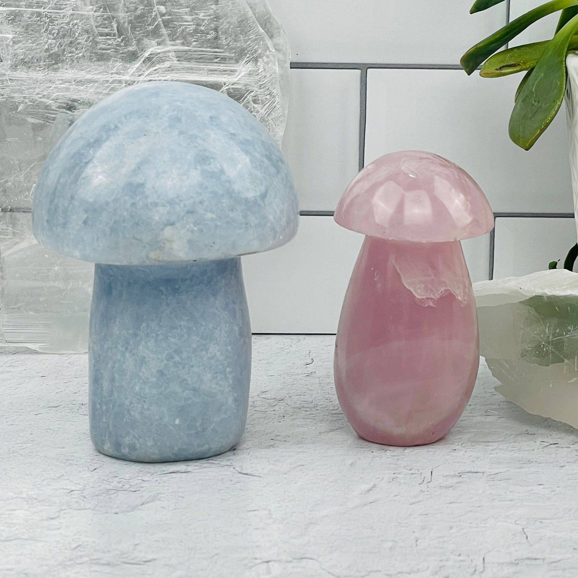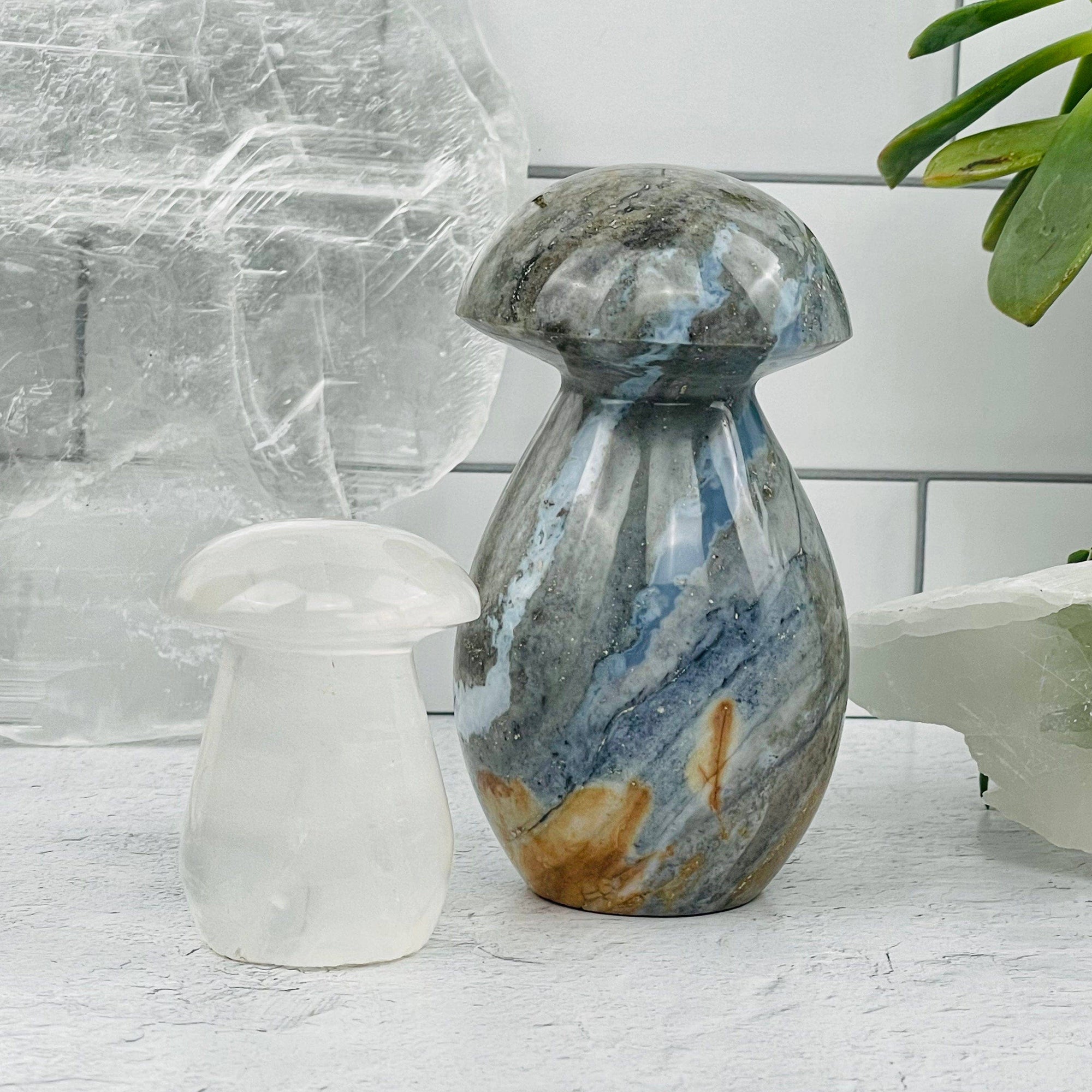 These adorable mushrooms are the perfect addition to your alter, garden, or desk décor. These mushrooms give off the perfect forest enchantment vibes to any setting. They are all polished to give off as much color and light as possible. The mushrooms make a perfect gift to give someone or to keep for yourself.