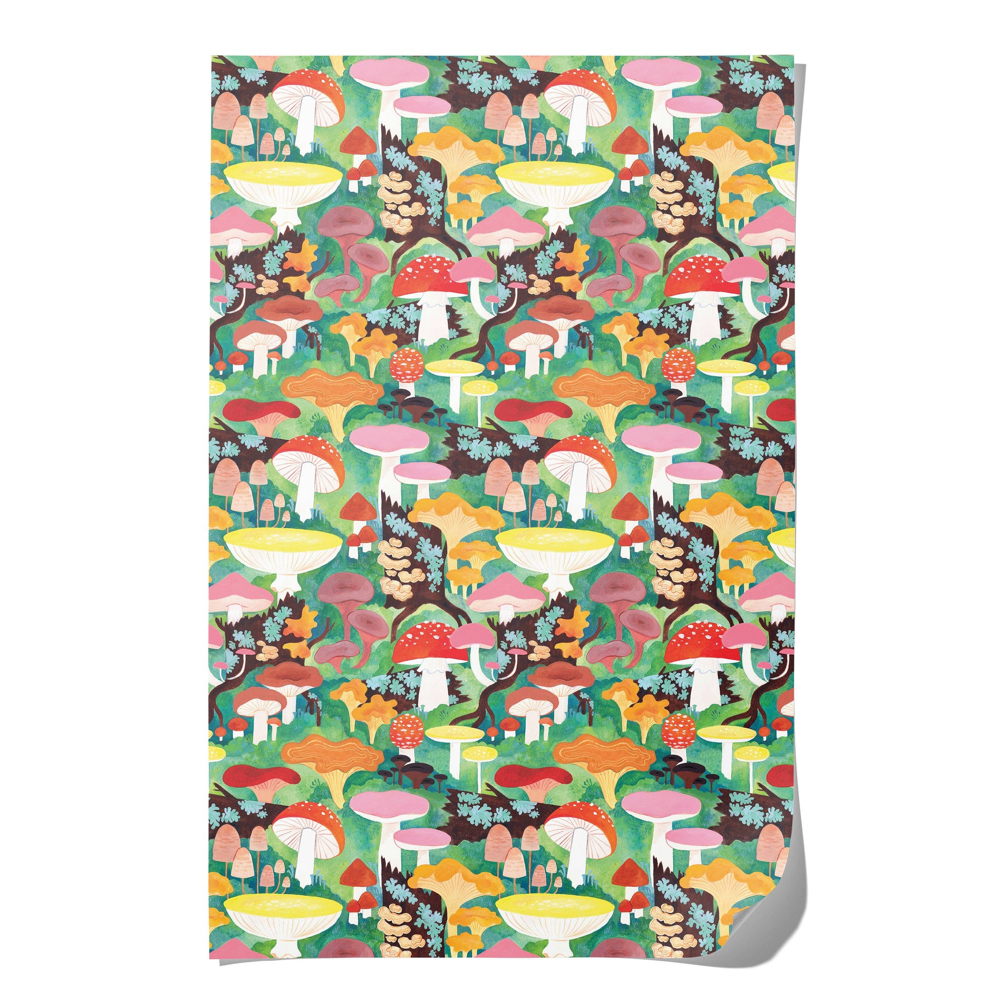 Sold as individual 19 x 27 inch sheets of flat wrap, or as 3 sheets rolled and sealed together in cellophane (without a cardboard core). Illustrated by Kelsey Garrity Riley. Printed by Red Cap Cards in Los Angeles, California, USA, on recycled paper.